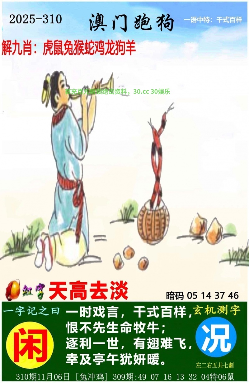 | 311期五肖 | 猴鸡虎蛇牛 | 开:蛇37 |