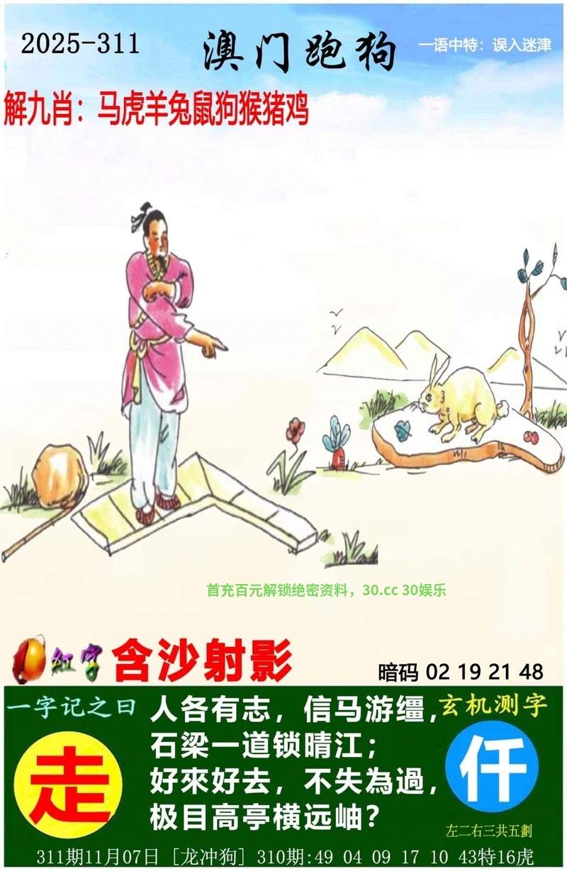 | 307期:力杀两合╠09.10合╣开:狗20准 |